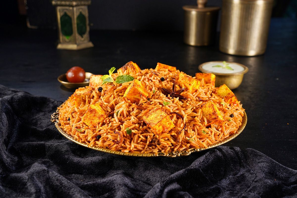 Hyderabadi Zaikedaar Paneer Biryani (Paneer Dum Biryani)(Spicy)