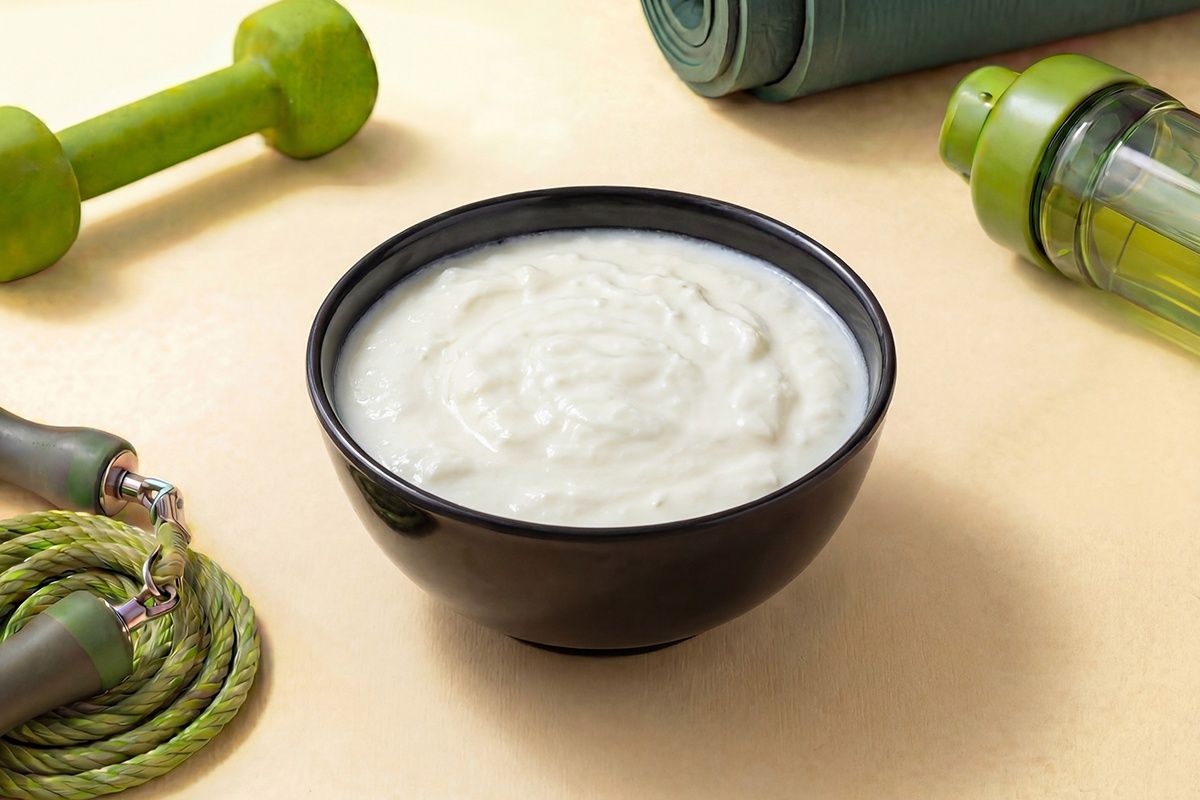 A delicious bowl of creamy set curd made from the freshest of milk.