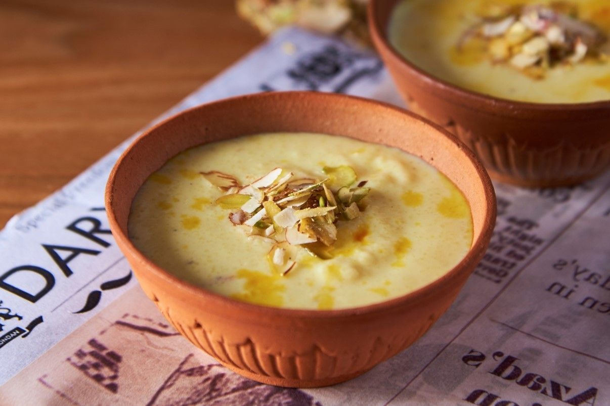 Silky, slow cooked semolina and milk pudding flavoured with Kashmiri saffron.