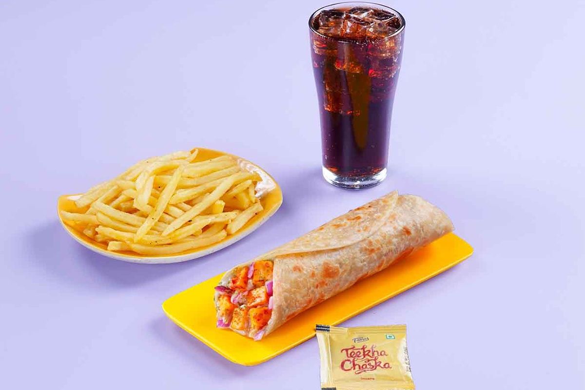(Serves 1) Super Saver Paneer Tikka Wrap Meal + Thums up