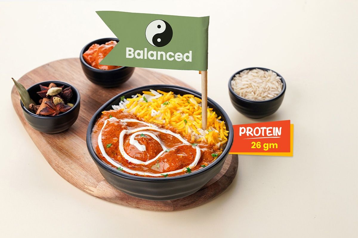 "543kCal, Protein - 26g, Carbs - 39g, Fat -28g Rich and buttery Mughlai chicken...Read More