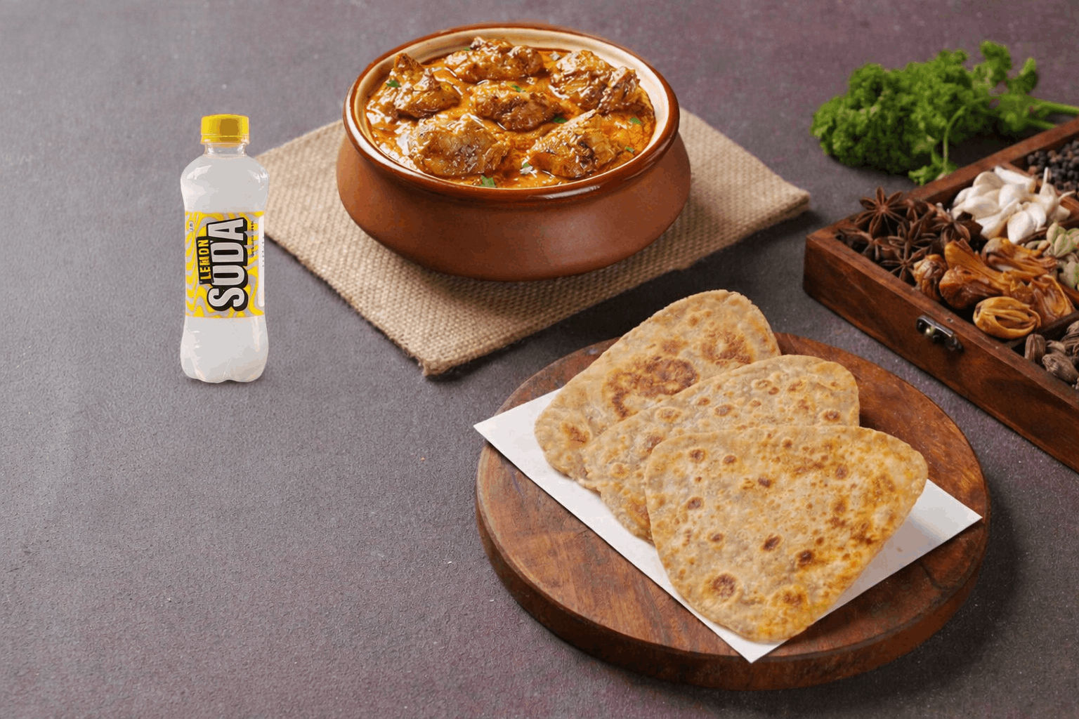 A full plate built around rich non-veg gravy, with a side and a beverage to go w...Read More