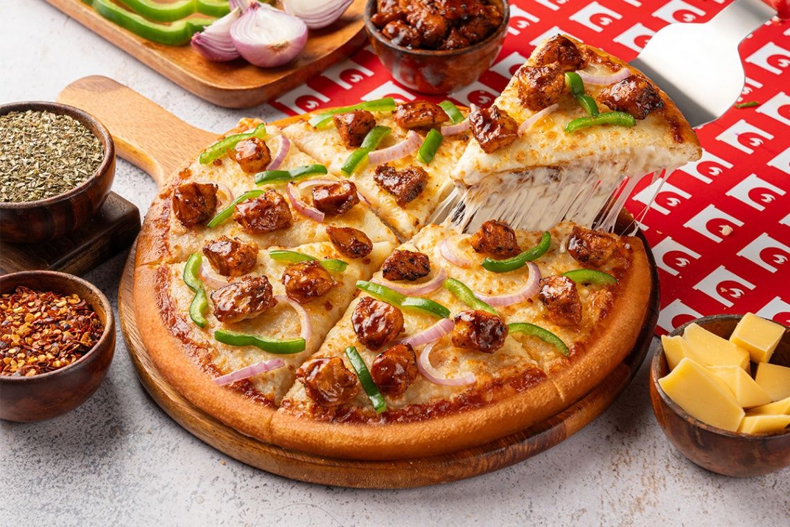 BBQ Chicken, Capsicum, Onions, Mozzarella Cheese, El Classico Cheese.