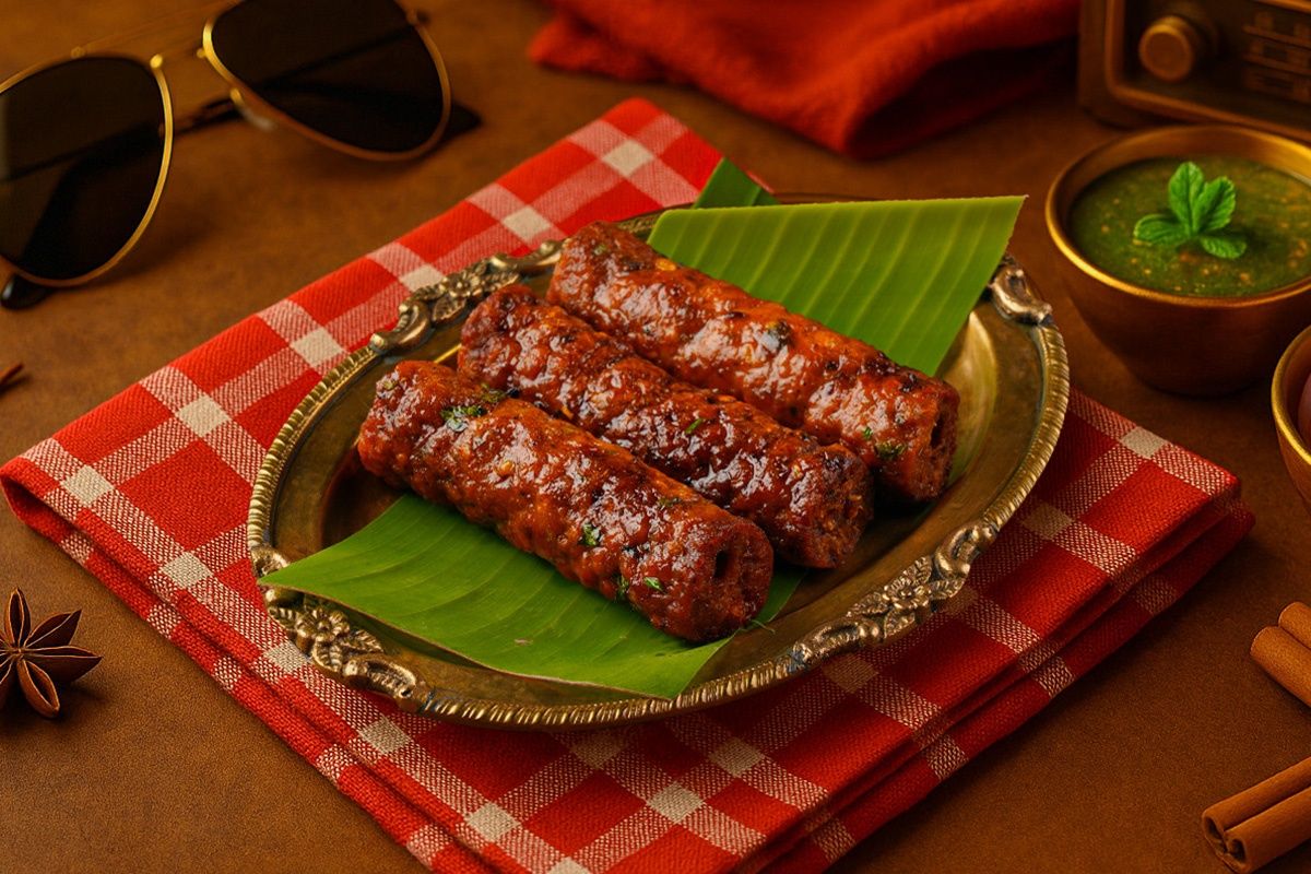 Spiced mutton seekh. Charred right. Flavour worth a standing ovation.