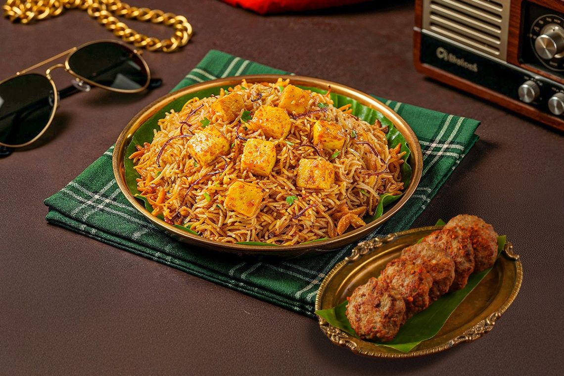 Slow-cooked veg biryani and a veg side, brought together for a satisfying meal.