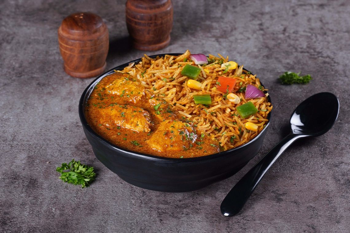 (500 gms) Tender chicken cooked in fresh bhuna spices, served with flavoured ric...Read More